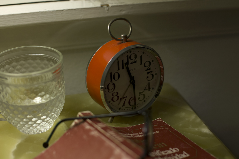 Pensei então que, me submetendo a esse dispositivo, poderia observar meu próprio sono e manter um registro de minha atividade noturna, desdobrando-me assim nas posições do empregado e do empregador. Ou, ao menos, estabelecer o intervalo real entre os parâmetros X e Y de forma estritamente mecânica. E foi o que fiz no mês de agosto de 2013, ao dormir no período de um mês amarrado a um desconfortável relógio de ponto de vigia noturno e virar a chave no mecanismo a cada vez que sentisse estar acordando. A última vez que o fizesse pela manhã, deveria ser então a definitiva. Com a exceção de que a chave, no meu caso, já estaria inserida no relógio durante a noite — eliminando o parâmetro espacial original e, com ele, a analogia com a figura do sonâmbulo —, o funcionamento me parecia ser exatamente o mesmo: um impulso orgânico, produzido por uma consciência reduzida, dispara o dispositivo mecânico.