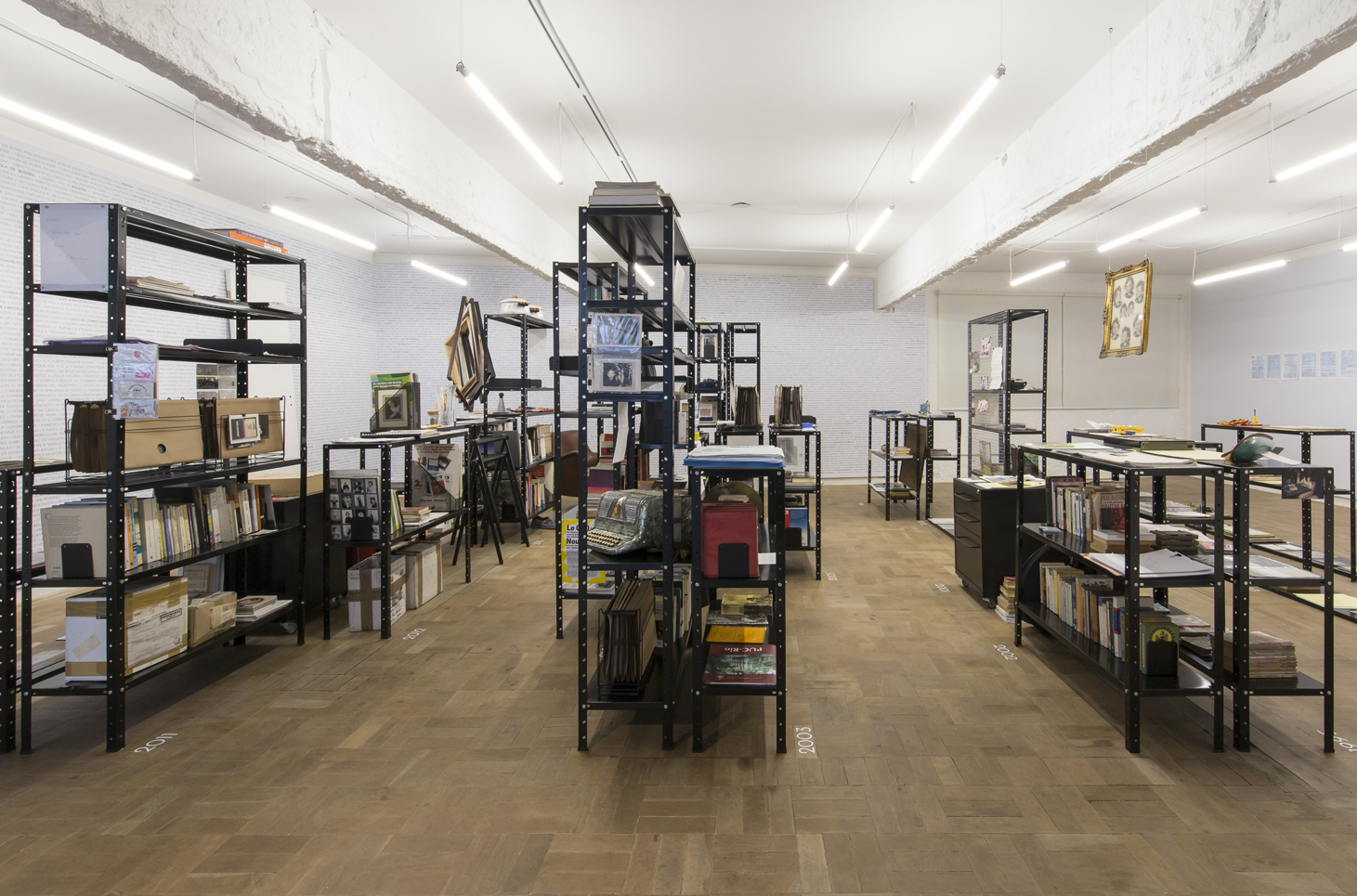 No espaço, esse conjunto de objetos e papéis são apresentados em um grid, com um eixo horizontal desenhado no chão em formação ortogonal com um eixo volumétrico vertical de prateleiras. Esse destrinchamento dos objetos em eixos emula os mesmos procedimentos de fragmentação dos stills, já que a fragmentação do audiovisual também se fará presente aqui, com uma gravação em áudio que se esforça na reconstituição das memórias dos objetos apresentados no grid. Uma decomposição sistemática e documentária, que visa ligar-se sempre com o elemento externo à arte. (...)