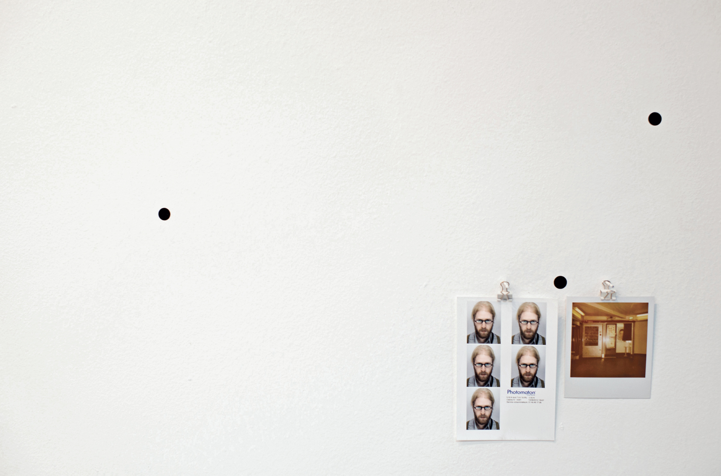 The sentence which opens this exhibition was extracted from Paul Auster’s New York Trilogy (1986). It appears in brackets in the original text, and has the paradoxical function of supporting the narrative, so far so perfectly fictional, in a supposedly traceable reality. Following the model of classic detective novels, the images in this exhibition are presented to the public as "evidences". They are linked to narratives, written in the first person, which try to account for displacements through urban space. These images, like points in straight lines, register the exact moments in which the threads of these narratives are interrupted, and then project themselves in another direction…